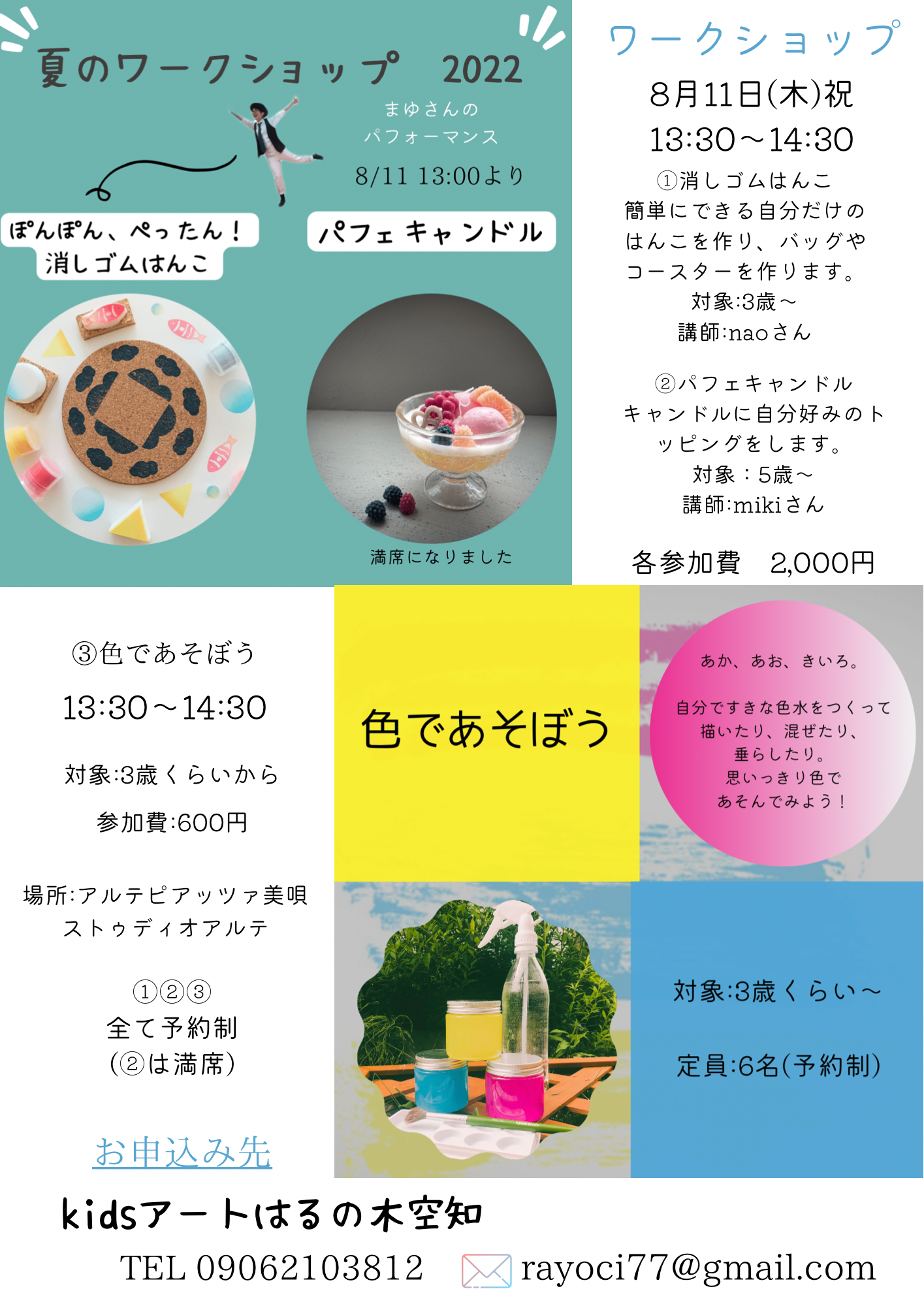 対象:3歳〜 未就学児は保護者同伴 定員:8名 参加費:2000円 |